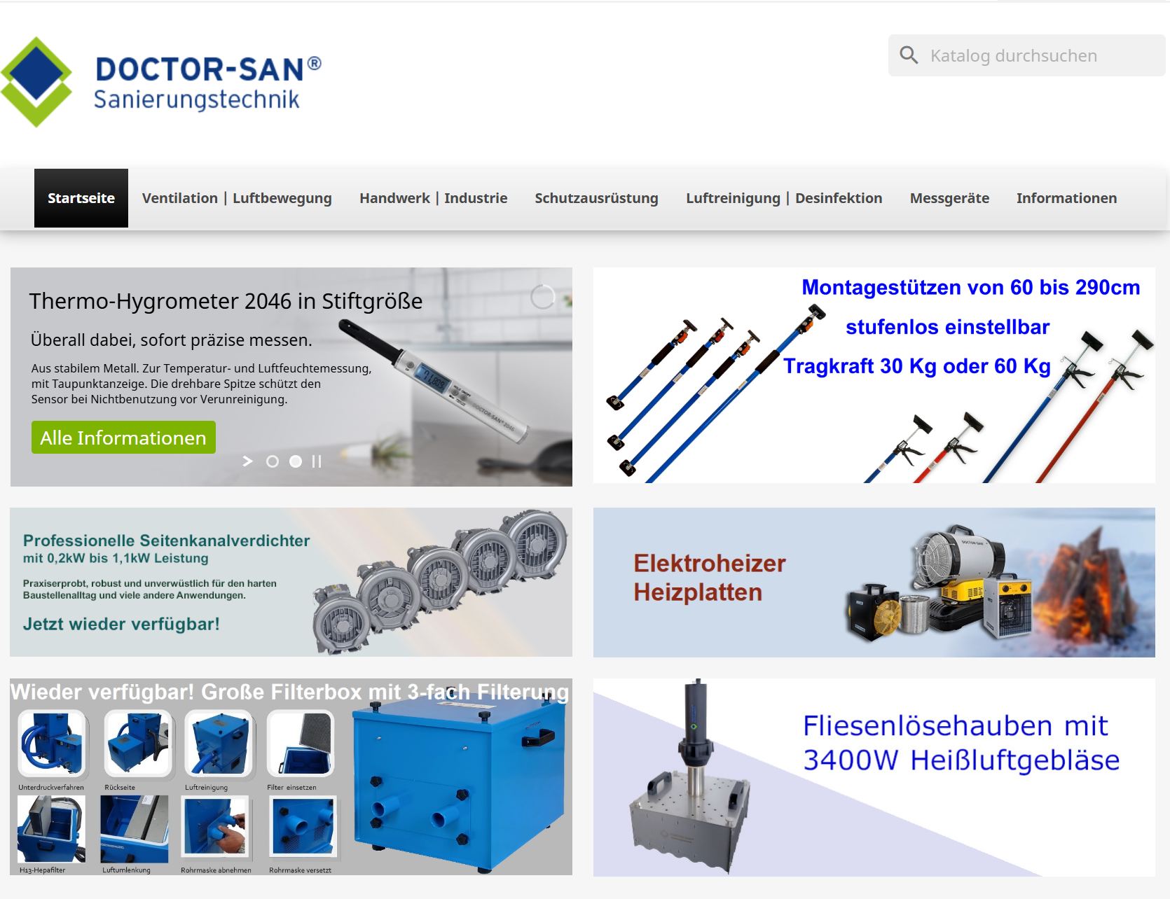Doctor-San ist deine Anlaufstelle, wenn es richtig „professionell trocken“ werden muss: Von Bautrocknern über Bau-/Industriegebläse, Seitenkanalverdichter bis hin zu Luftschläuchen, Zubehör und Messtechnik bekommst du hier alles, was man für Wasserschadensanierung, Bautrocknung und Luftbewegung braucht – zuverlässig, praxiserprobt und direkt einsatzbereit. Kurz: Wenn du Baustelle, Keller oder Projekt wieder in den Griff bekommen willst, liefert Doctor-San die passende Sanierungstechnik, ohne Umwege.