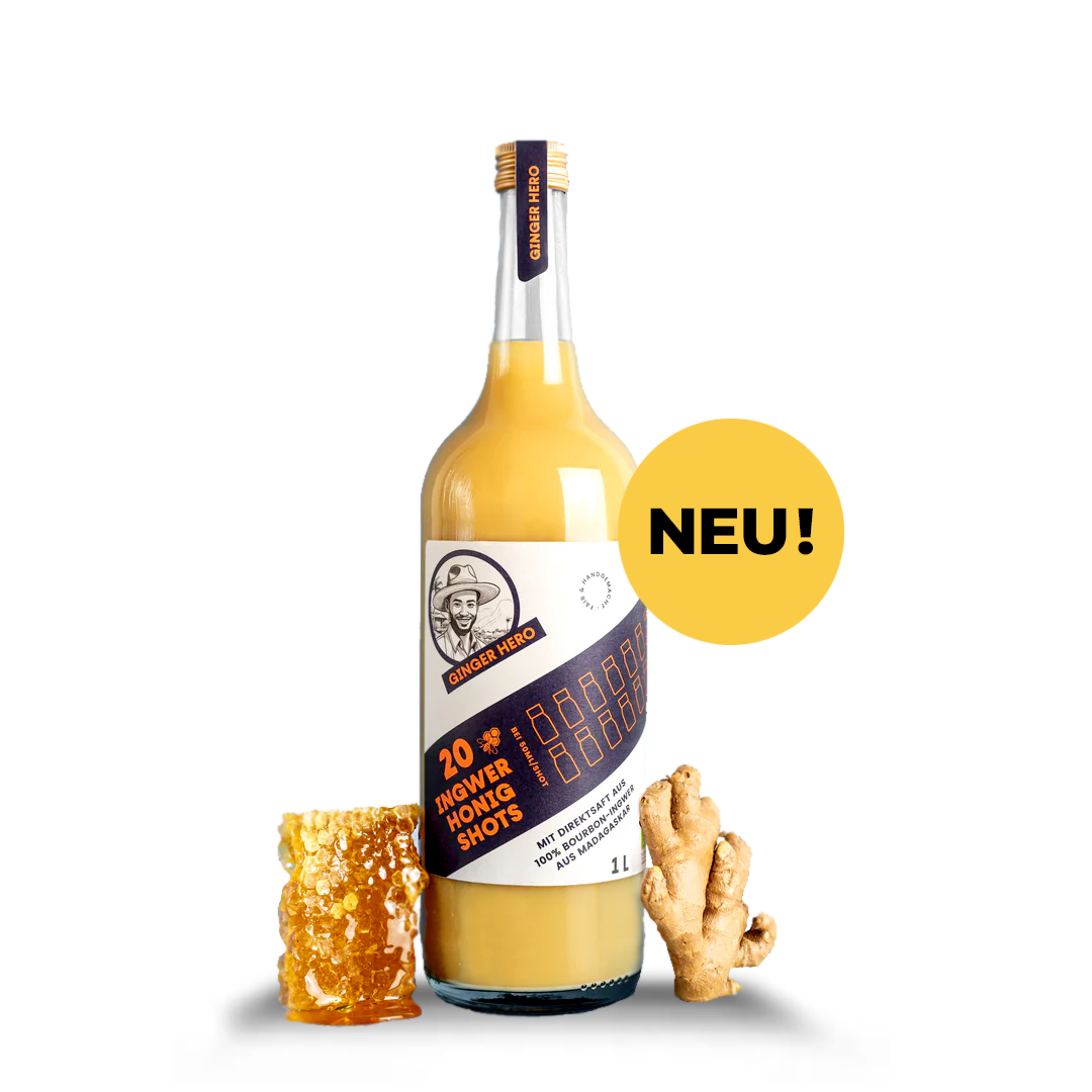 Ginger Hero ist dein täglicher Ingwer-Kick in seiner besten Form: kraftvoll, natürlich und kompromisslos hochwertig. Im Zentrum steht echter Bourbon-Ingwer aus Madagaskar – bekannt für seine besonders aromatische Schärfe und intensive Frische. Ob als Shot, Sirup oder Konzentrat: Ginger Hero bringt dir pure Power in die Flasche, perfekt für alle, die sich bewusst etwas Gutes tun wollen – mit Geschmack, Charakter und richtig Druck.